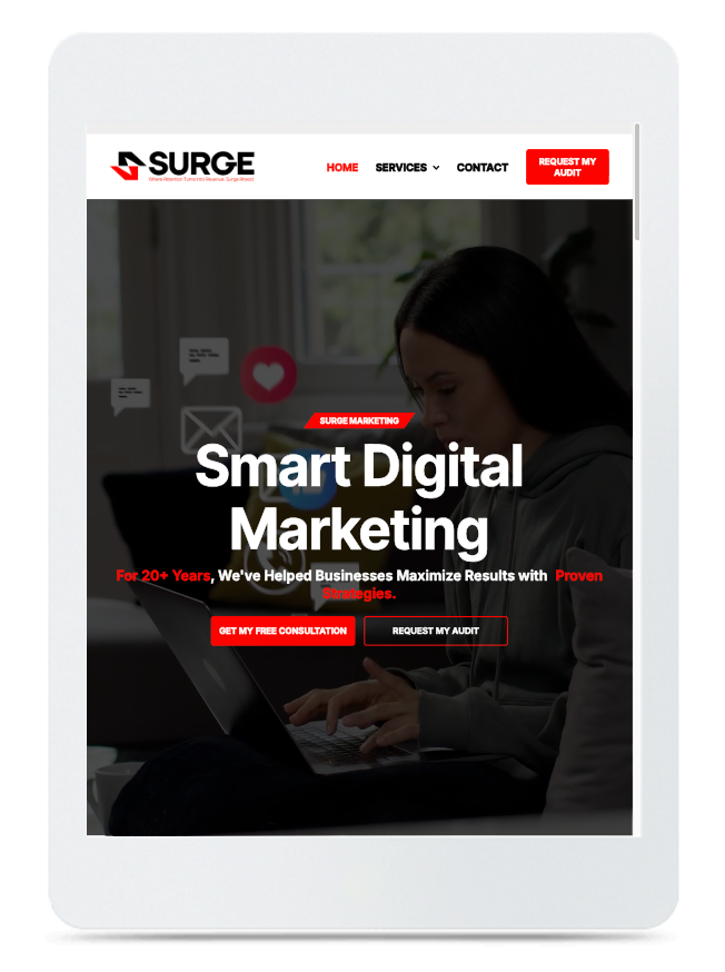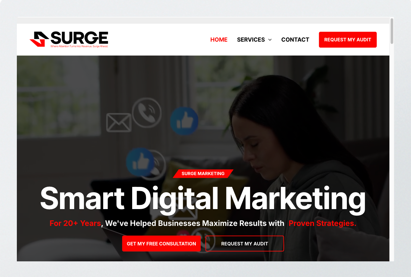 Your website should be a growth engine, not a digital brochure. Surge builds high-performance sites designed to convert visitors into booked calls for service businesses. We create clean, fast, and strategic websites that make you look elite and help you scale.